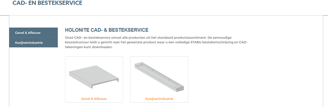 - CAD en bestek van alle Holonite producten zijn in een paar klikken verkrijgbaar;